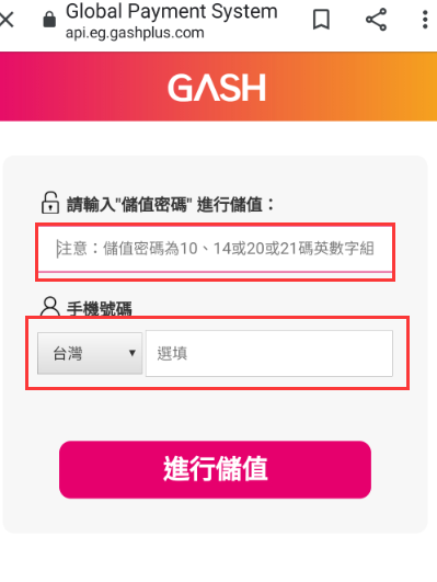 Step 5:輸入儲值密碼與手機後,點選進行儲值。