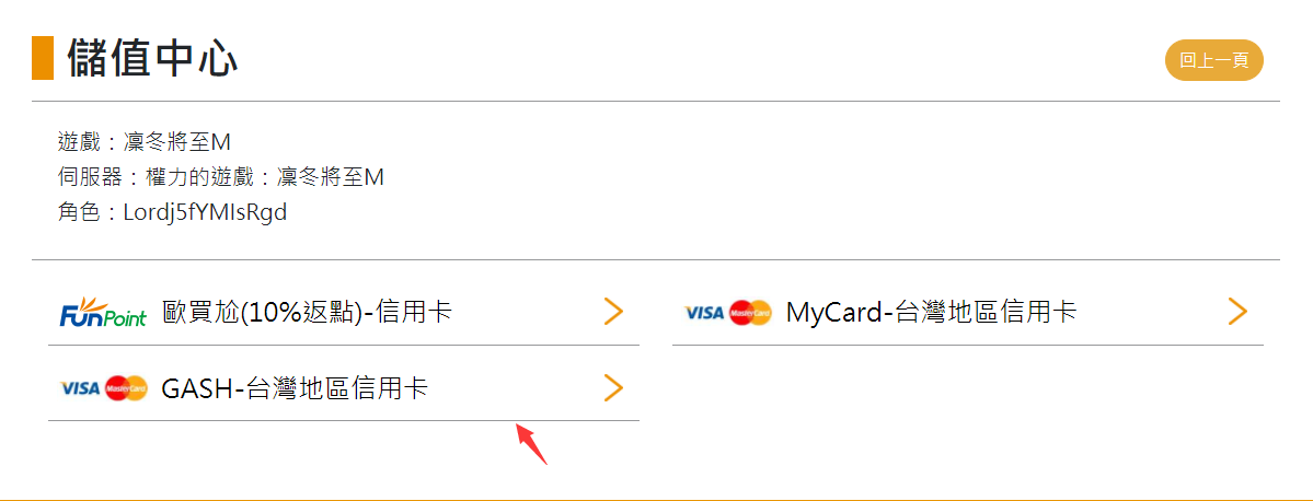 儲值管道包含:GASH點數卡、信用卡、電信小額、WEBATM、銀聯/支付寶、GASH會員轉點、銀行轉帳、天天賺