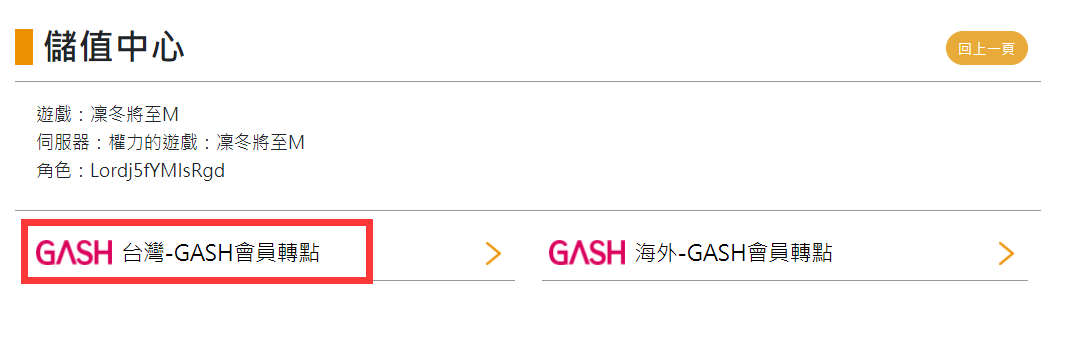 Step 2:選擇GASH或MyCard進行會員轉點。(以Gash台灣為例)