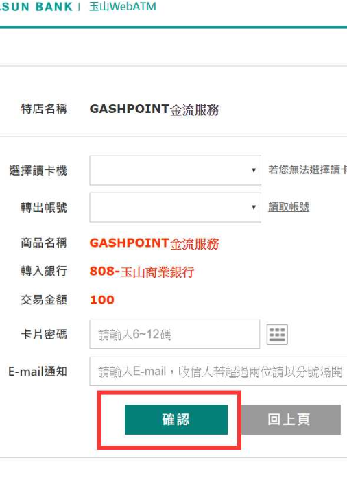 Step 7:填寫正確的玉山WEBATM資訊後,點選確定。