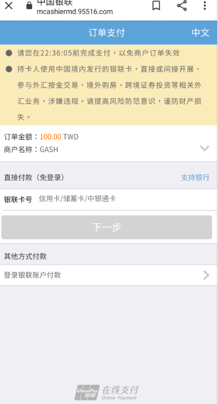 Step 3:選擇銀聯卡後,點選下一步。